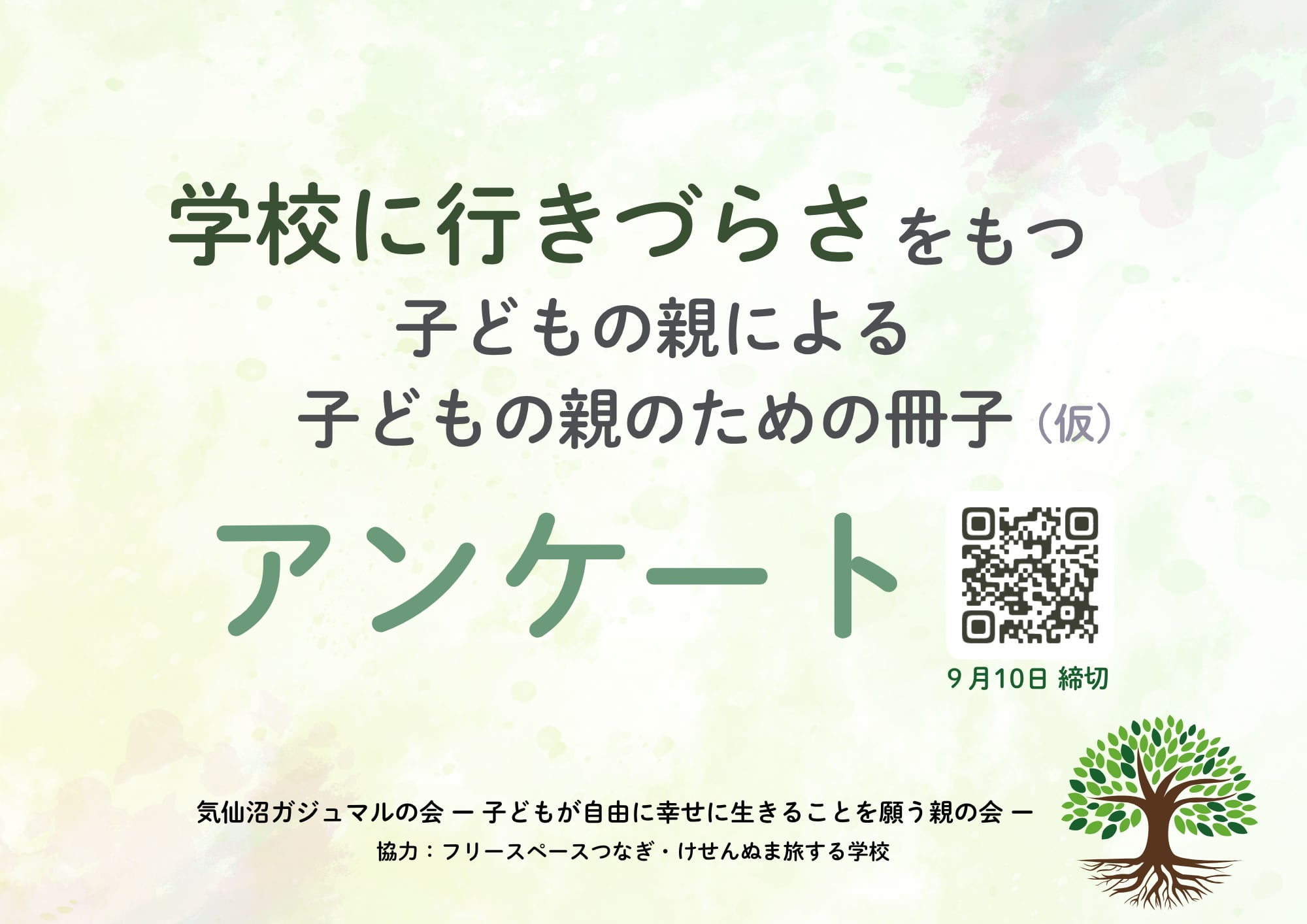 学校にいきづらい子どもをもつ保護者のアンケート開始します!